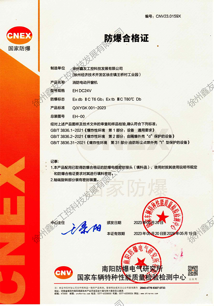 徐州鑫友工控科技發(fā)展有限公司成立于2008年,占地31600平方米,全資子公司:江蘇良紫工程科技有限公司,旗下 有“鑫友”及“MASTER.W主人窗控”兩個品牌系列,公司全面貫徹執(zhí)行IS09001:2015質(zhì)量管理體系標(biāo)準(zhǔn),產(chǎn)品順利通過歐盟CE認證和中國***消防電子產(chǎn)品認證,通過可燃性粉塵環(huán)境下、爆炸性環(huán)境下防爆合格產(chǎn)品檢驗。排煙天窗整窗通過***消防產(chǎn)品質(zhì)量監(jiān)督檢驗中心檢測。先后獲得多項******及榮譽證書。集研發(fā)、加工、生產(chǎn)、制造、銷售、安裝及售后于一體,是一家高起點、研發(fā)能力強的專業(yè)智能化***技術(shù)企業(yè)。